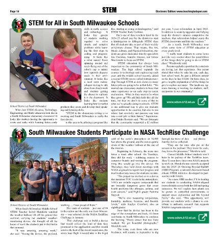 summer, carrying her students’ weather- Challenge in January. sent home to South Milwaukee to continue www.sdsm.k12.wi.us