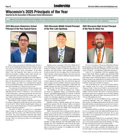 2025 Wisconsin Elementary School 2025 Wisconsin Middle School Principal 2025 Wisconsin High School Principal