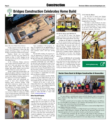 belt full of tools and shared each student’s Bay Community Foundation’s Impact Invest- dents built a 24' x 24' detached garage. Students www.gbaps.org